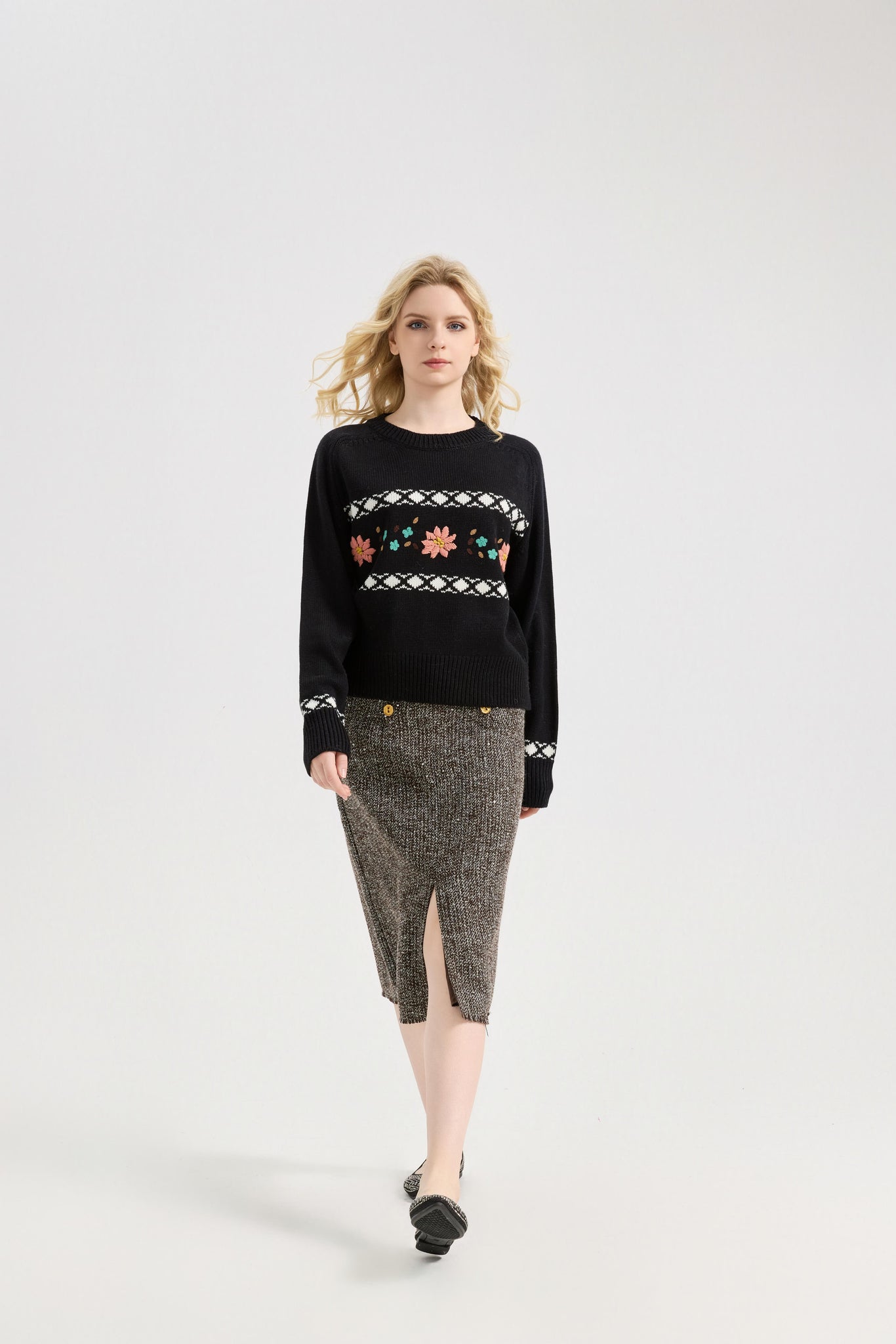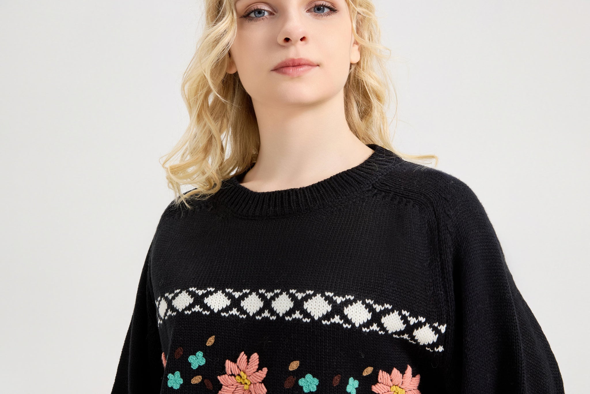 ·Features:crew neck, daisy embroidered, long sleeve, chunky knit sweater pullover.